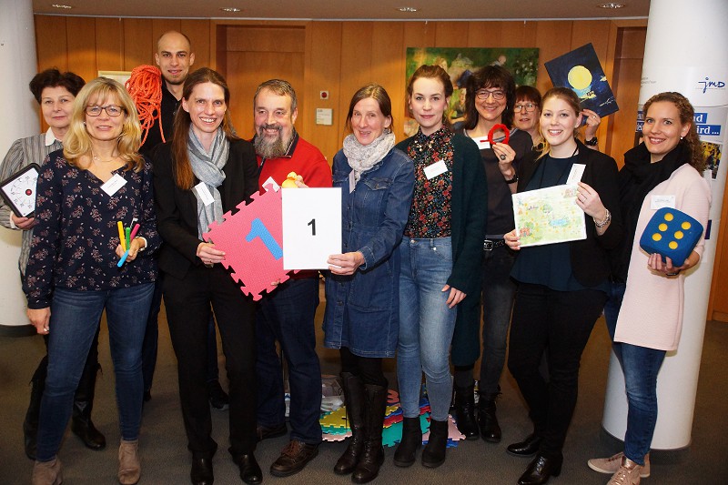 Anschließend ging es in die Workshops, die den Fachkräften eine Reihe Ideen lieferten, die sie anschließend in ihren Kindertagesstätten und Grundschulen umsetzen können. Wie der Sprachstand eines Kindes leicht im Alltag zu beobachten ist und wie Schwierigkeiten unter anderem durch Sprachspiele begegnet werden kann, nahm der Workshop von Karin Staeck-Aschemeyer, Koordinatorin für Inklusion im Primarbereich des Kreises Herford und Beatrice Koch in den Blick.